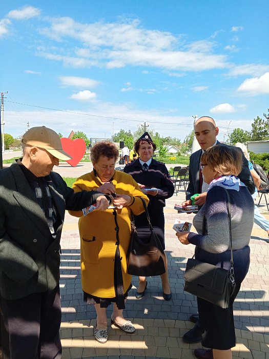 Инспектор ГИБДД, старший лейтенант полиции Нижегородцева Оксана и сотрудник районной администрации Пименов Евгений, вручили жителям Татищево символ Победы, носимый у сердца в знак почтения к героизму победителей в Великой Отечественной войне. Георгиевская лента является одним из наиболее узнаваемых символов воинской доблести России и одним из главных атрибутов празднования Дня Победы.