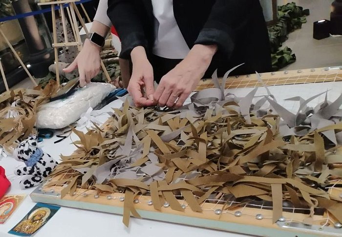 Главным событием дня стал мастер-класс по изготовлению предметов снаряжения для военнослужащих, организованный местными волонтерами. Среди участников были люди разного возраста – от школьников до взрослых, объединяемые общим желанием поддержать армию. Волонтеры, опытные и терпеливые, в мельчайших подробностях демонстрировали технику плетения маскировочных сетей. Они подробно объясняли, какой тип ткани лучше подходит для конкретных целей, как правильно завязывать узлы, чтобы сеть была прочной и долговечной. Помимо сетей, ребята учились плести нашлемники – небольшие маскировочные чехлы, скрывающие форму бойца от вражеской оптики и браслеты выживания.