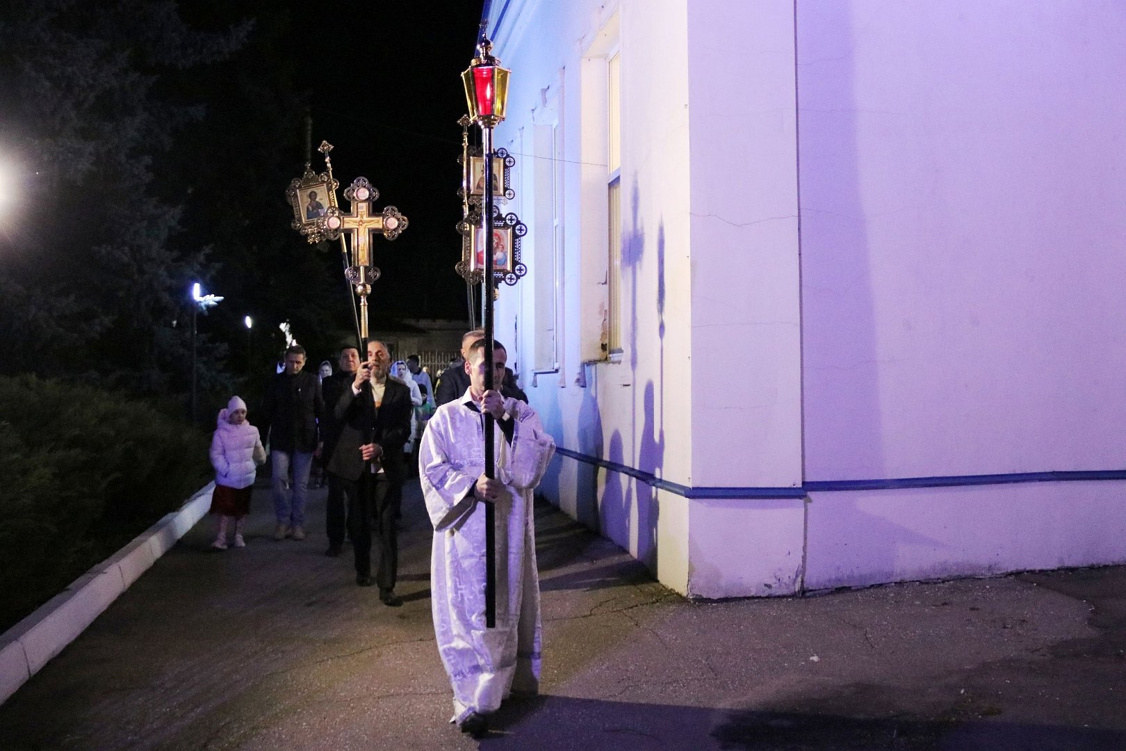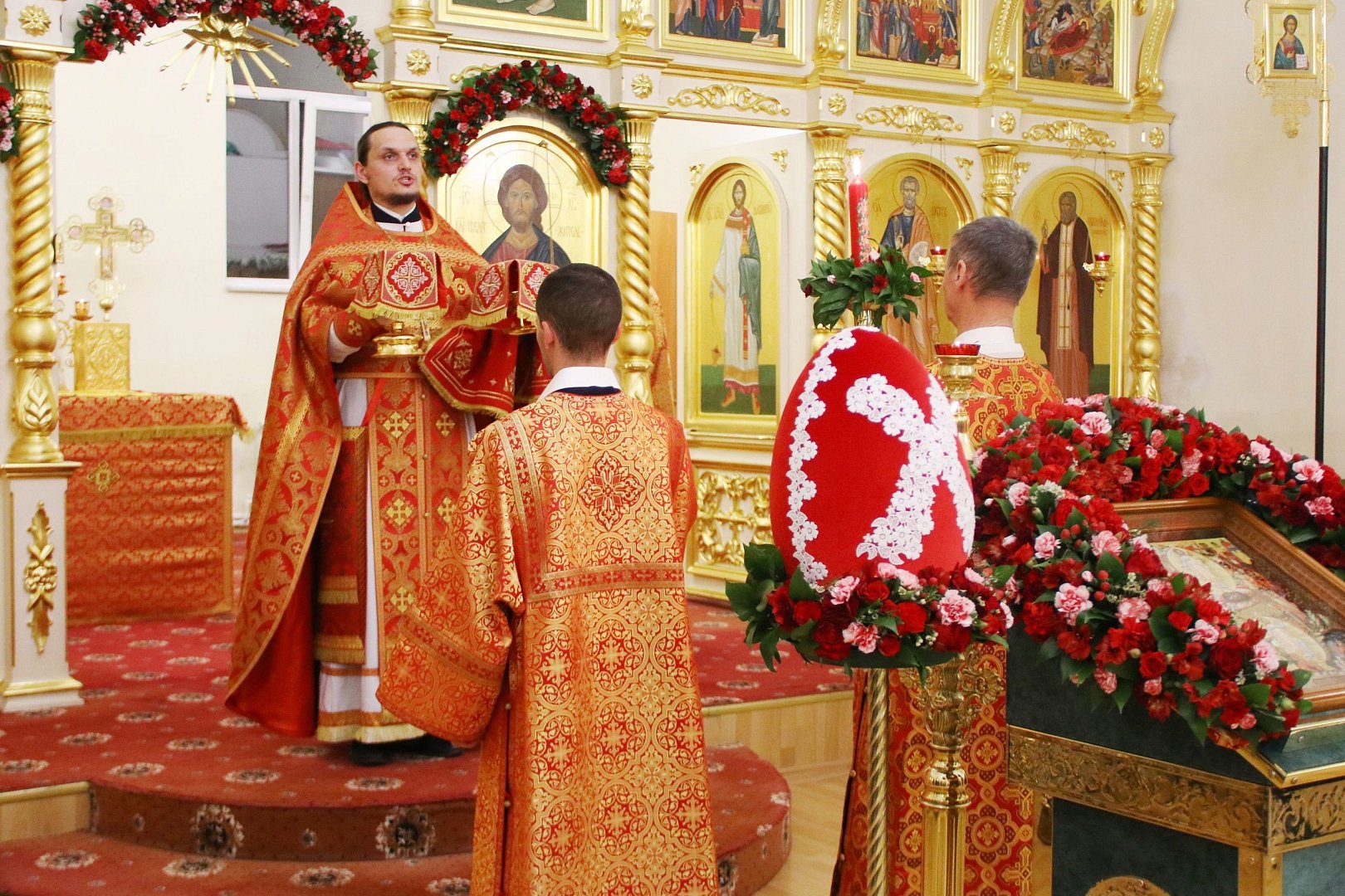 Согласно Евангелию, ангел отвалил камень и возвестил о Воскресении Спасителя. Так же открываются двери храма и начинается служба. В полночь отец Антоний возвестил пасхальное приветствие: «Христос воскресе!». За ним прихожане с зажженными свечами прошли в храм, где продолжилось Богослужение. По его завершении настоятель зачитал Пасхальные послания Святейшего Патриарха Московского и всея Руси Кирилла и митрополита Саратовского и Вольского Игнатия. Перезвон колоколов, разносивший весть о Воскресении Христовом, огласил окрестности храма. Пасха - это праздник возрождения, обновления и надежды. В этот день христиане радуются Воскресению Христа, которое открывает путь к вечной жизни для всех верующих.