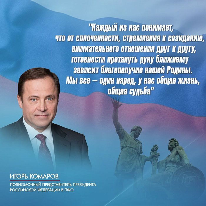 Полномочный представитель Президента России в Приволжском федеральном округе Игорь Комаров поздравил жителей округа с Днём народного единства.