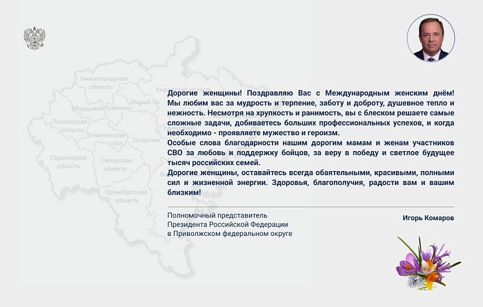 Поздравление полномочного представителя Игоря Комарова с Международным женским днем