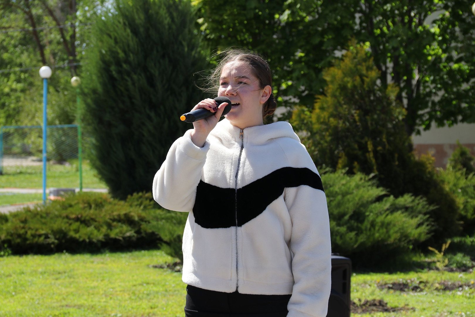 Ученица седьмого класса, Умирова Жанель, спела песню "Не забывайте", а затем ребята исполнили вальс в память о выпускниках 1941-го года.