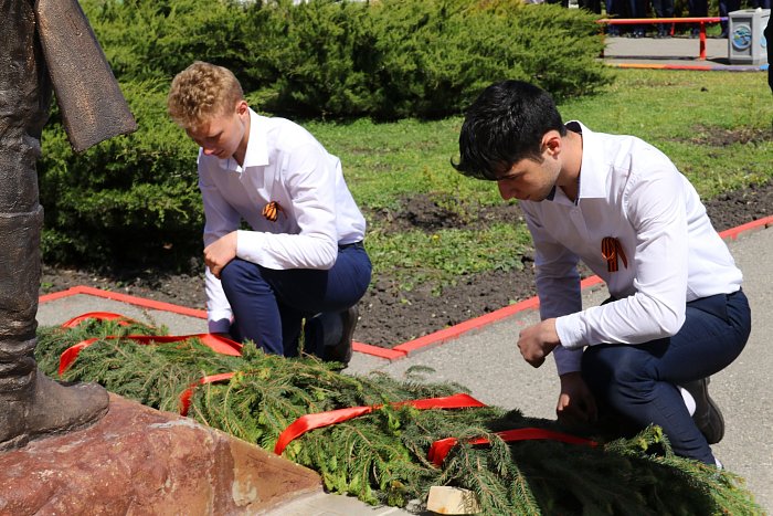 В преддверии Дня Победы, в сквере "Молодежный" возле памятника выпускникам школ района, ушедшим на фронт, состоялся торжественный митинг татищевских лицеистов. Глава района П.В. Сурков, поздравил школьников с наступающим праздником и напомнил им о тех молодых людях, которые защищали нашу Родину 79 лет назад: "Их подвиг стал ярким примером мужества, самоотверженности и любви к Отечеству. Современная молодежь должна быть достойна наследия своих отважных предков - героических сынов и дочерей Родины".