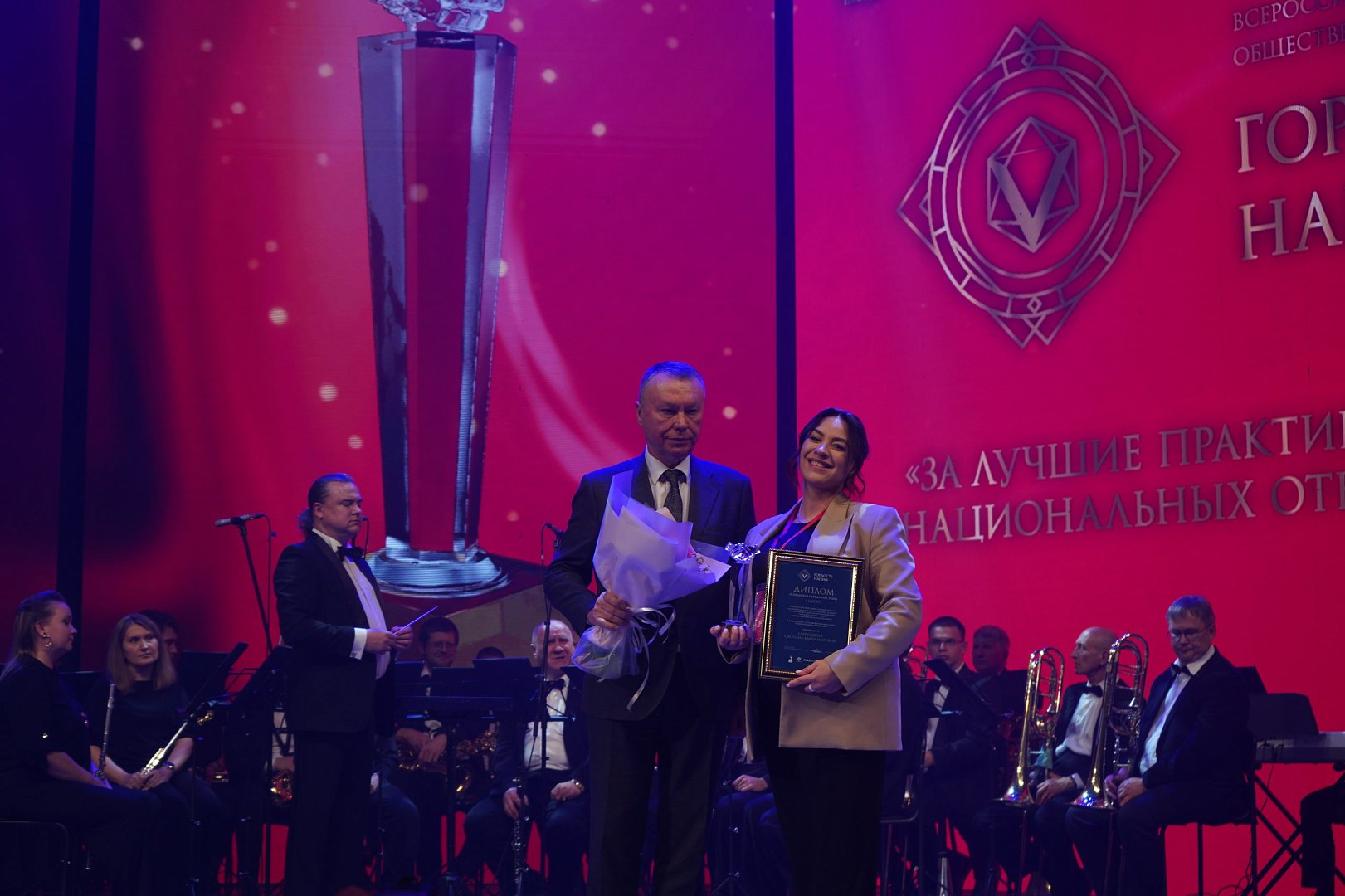 Главный федеральный инспектор по Саратовской области Виталий Сластной от имени полномочного представителя Президента РФ в Приволжском федеральном округе Игоря Комарова поприветствовал участников: «Награда, учрежденная Общероссийской общественной организацией «Ассамблея народов России», вручается талантливым людям в сфере сохранения и развития родных языков и культур народов России, укрепления межнационального мира и согласия, в том числе участникам окружного этапа - представителям общественных организаций, творческих коллективов, волонтерам, учителям родных языков, журналистам, мастерам народного творчества. Премия «Гордость нации» - высокая оценка знаний и достижений в сфере реализации государственной национальной политики».