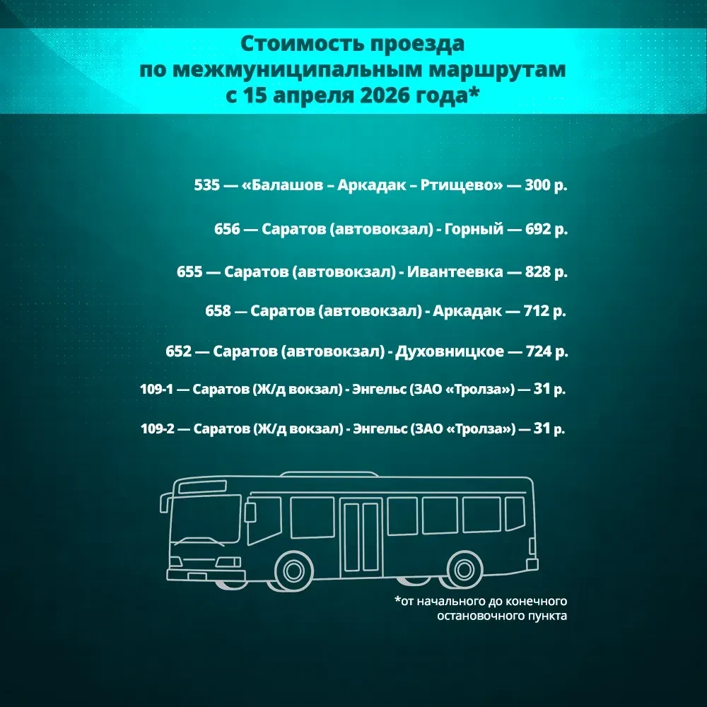 Саратов – Балаково: 624 рубля.