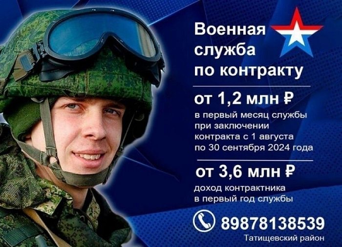 Подробнее узнать о военной службе по контракту можно по телефону «горячей линии» 117, в пункте отбора по адресу: р.п.Татищево, улица Свободная, д.9. 8 (84558) 4-14-06, 8-987-813-85-39, а также на портале «Госуслуги» или сайте службапоконтракту.рф.