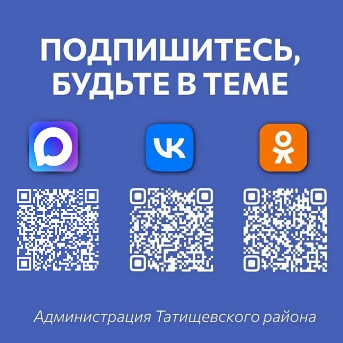 Чтобы быть в курсе жизни района, подписывайтесь на официальные каналы администрации Татищевского района