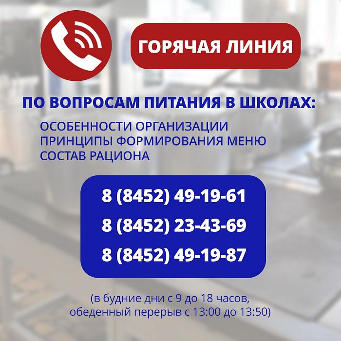 Подробные разъяснения по единому меню, принципах его формирования, составе рациона и так далее можно получить по телефонам горячей линии в будние дни с 9:00 до 18:00, перерыв с 13:00 до 13:50.️ 8 (8452) 49-19-61